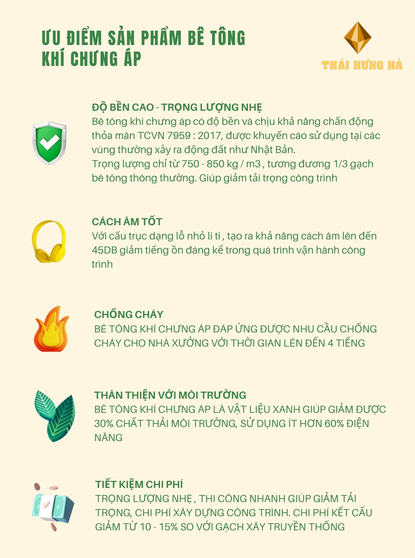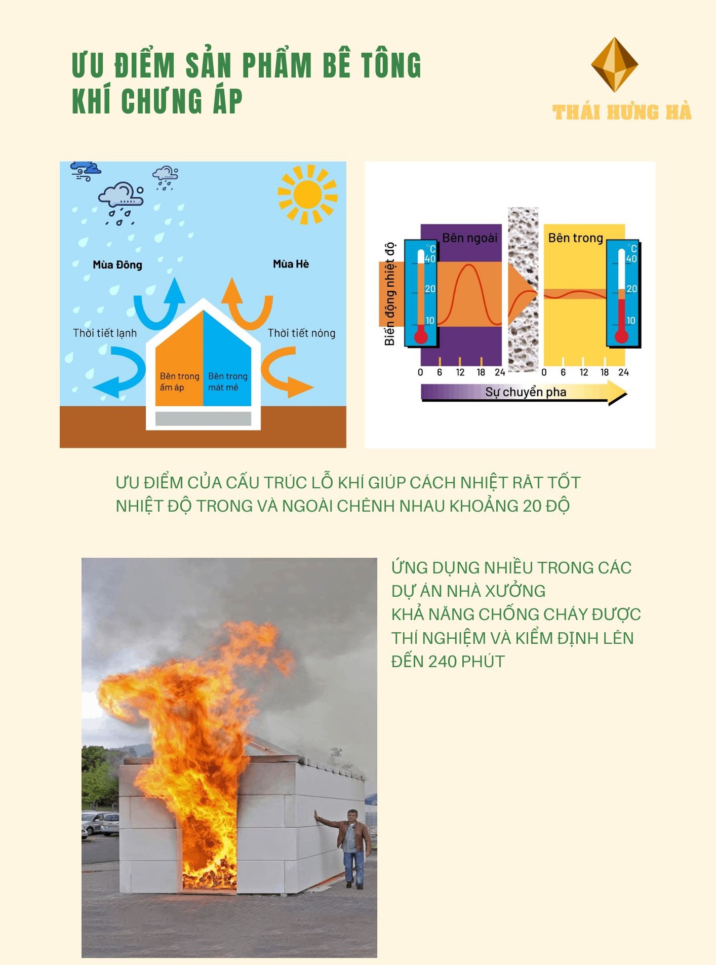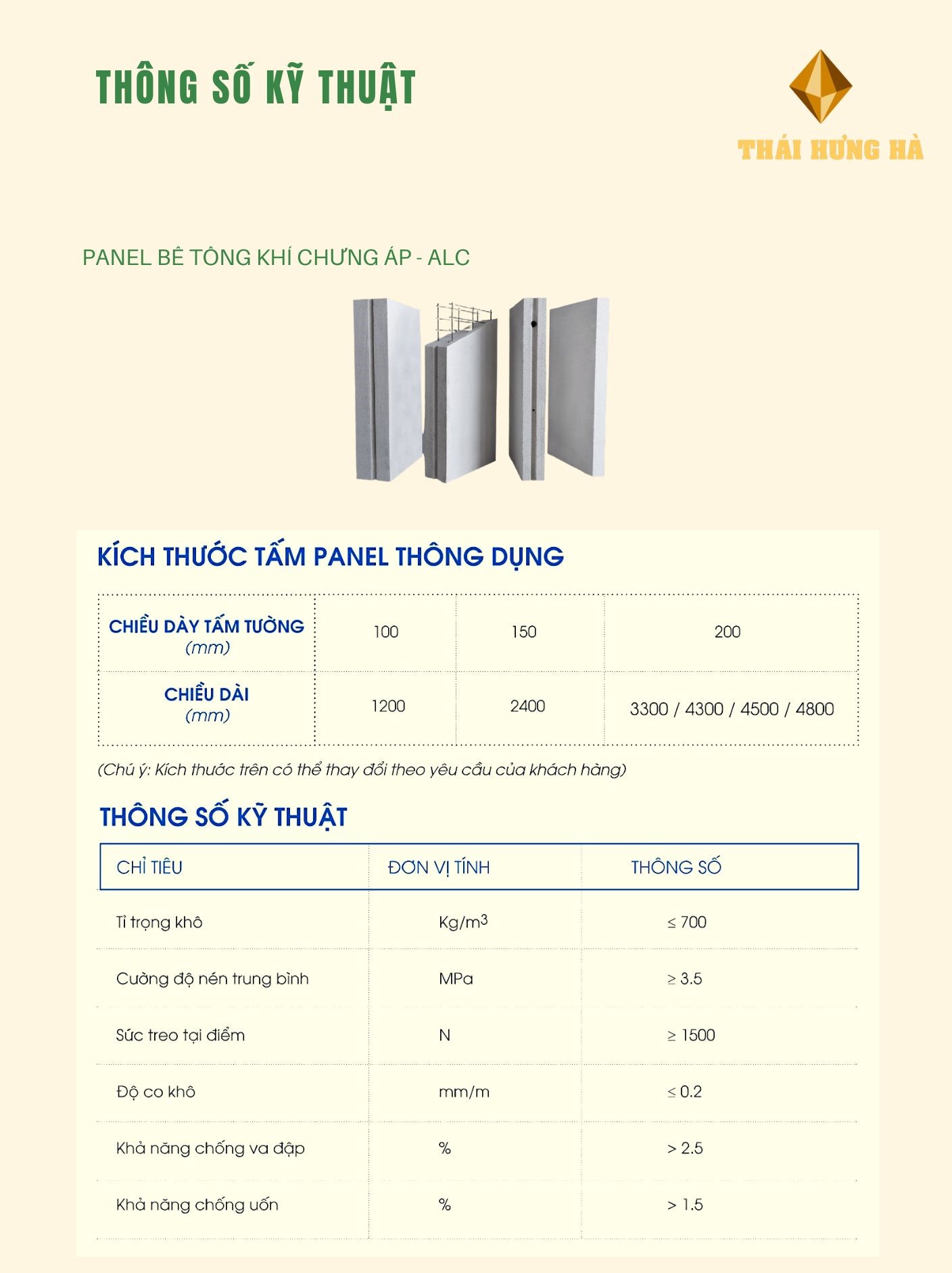Tấm Panel bê tông khí chưng áp là loại vật liệu có xu hướng thay thế gạch đỏ truyền thống . Với cấu tạo bọt khí làm giảm trọng lượng của vật liệu ( chỉ khoảng 800kg / m3 - nhỏ hơn gạch đặc 1300 kg / m3 )